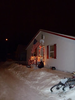 Front door of the unit - notice the wreath ribbon is upside down but is so frozen the ribbon stays upright!